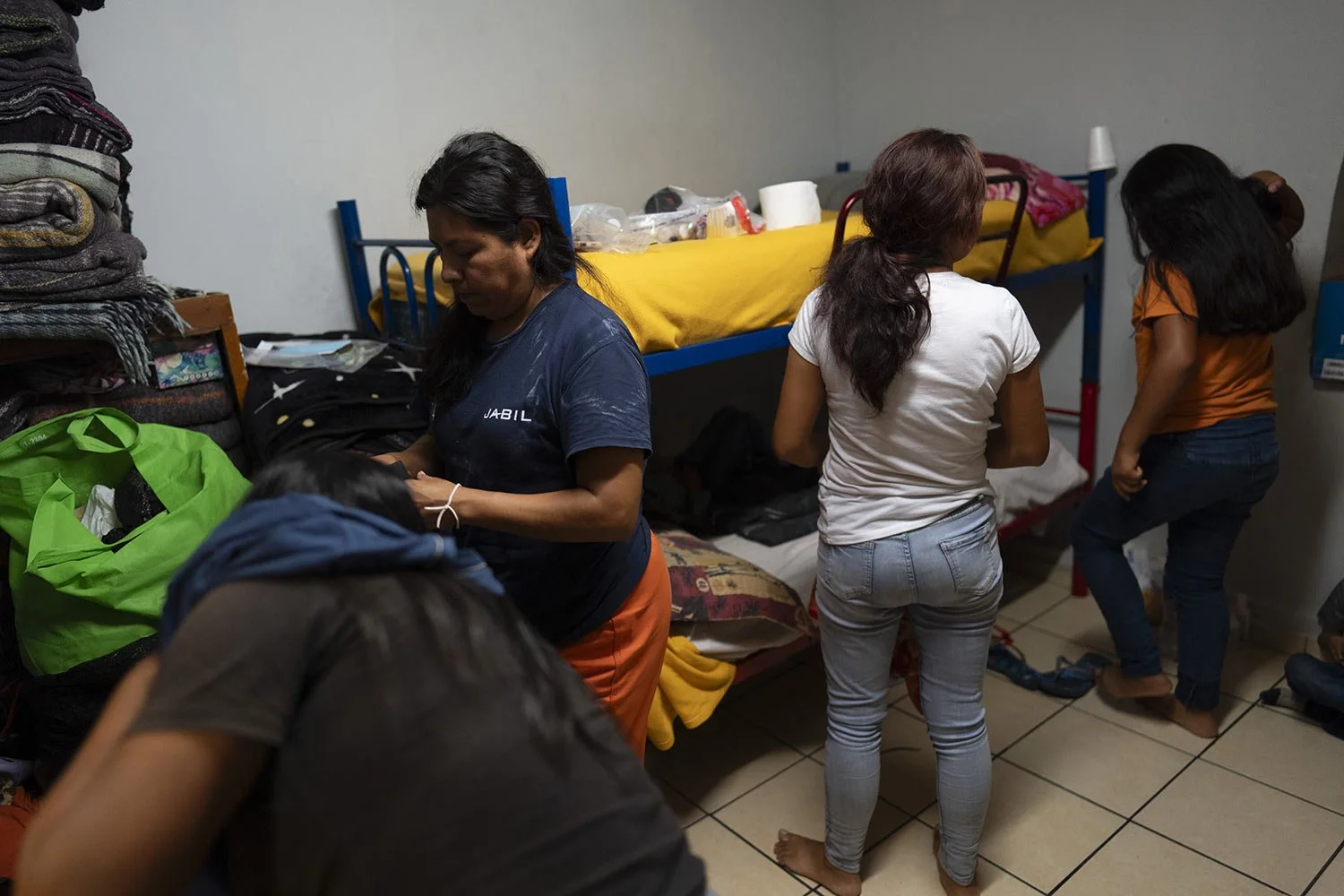 Female migrants, mostly Mexican nationals recently deported from the U.S., prepare to settle into their bunk beds for the night at the San Juan Bosco migrant shelter in Nogales, Mexico, Tuesday, June 25, 2024. (AP Photo/Jae C. Hong)