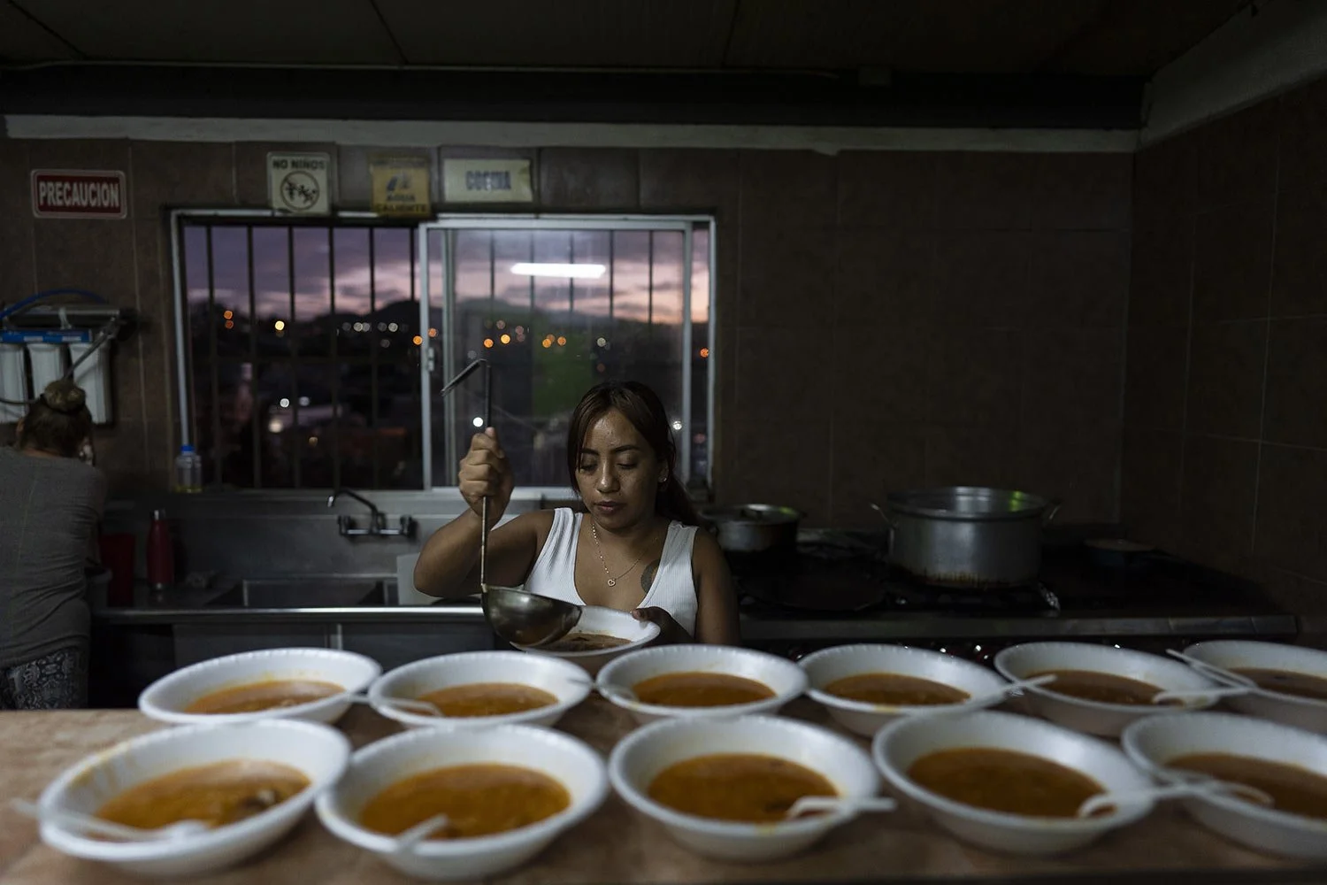 Volunteer Edith Garcia prepares soup to serve migrants, mostly Mexican nationals deported from the U.S., at the San Juan Bosco migrant shelter in Nogales, Mexico, Tuesday, June 25, 2024. (AP Photo/Jae C. Hong)