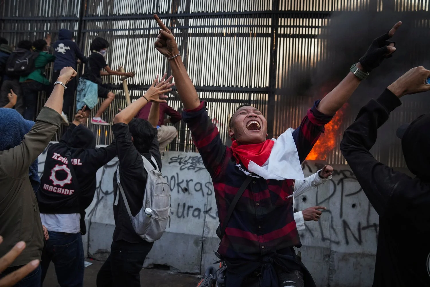 People attempt to storm Parliament during a protest against changes to election laws in Jakarta, Indonesia, Aug. 22, 2024. (AP Photo/Dita Alangkara)
