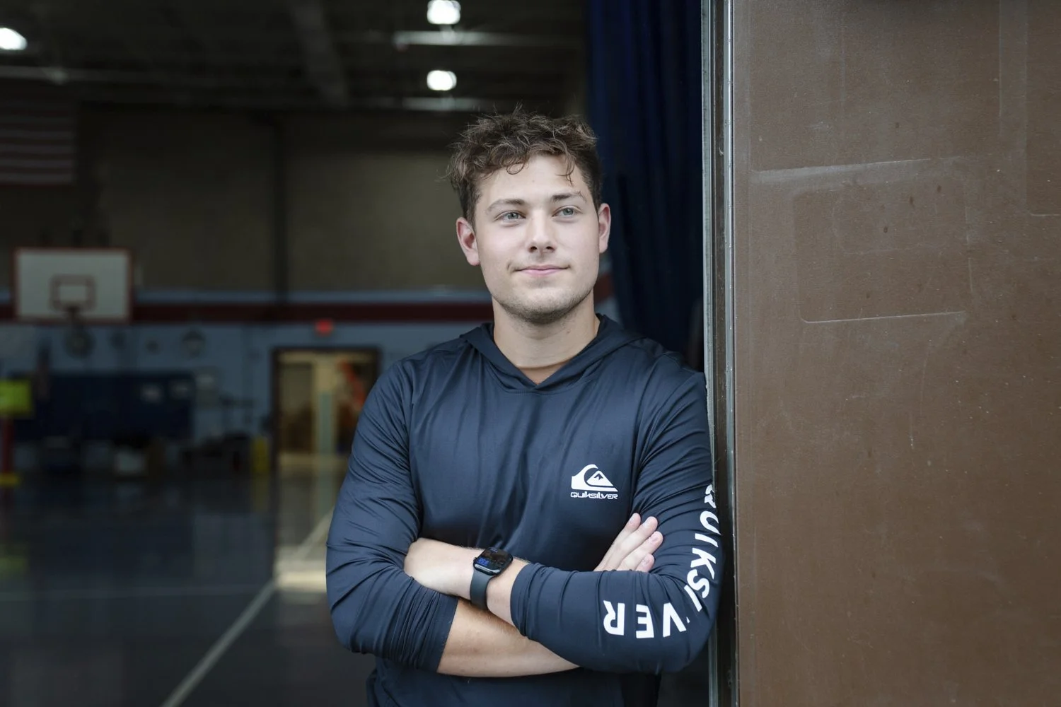 Nate Monteiro, 17, who grew up in the East Providence Boys and Girls Club and now works at the club, poses for a portrait at Emma G. Whiteknact Elementary School on Thursday, July 10, 2025, in Providence, R.I. (AP Photo/Sophie Park)