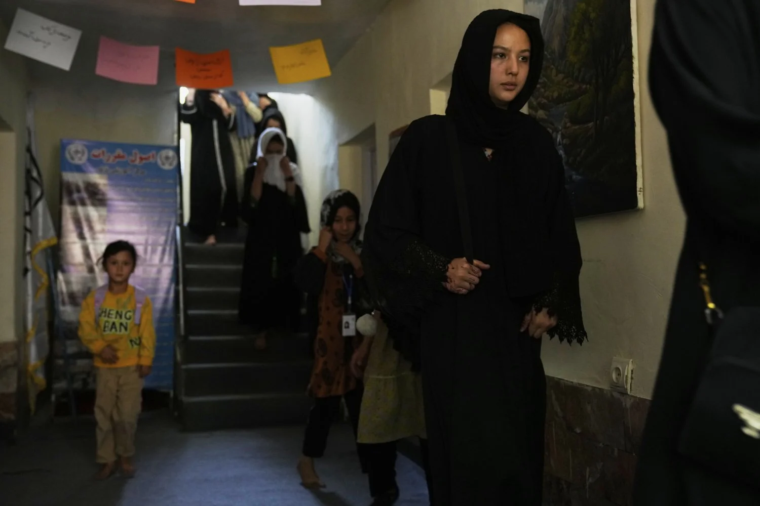 Afghan girls studying at an informal school walk through the school in Kabul, Afghanistan, Thursday, June 12, 2025. (AP Photo/Ebrahim Noroozi)