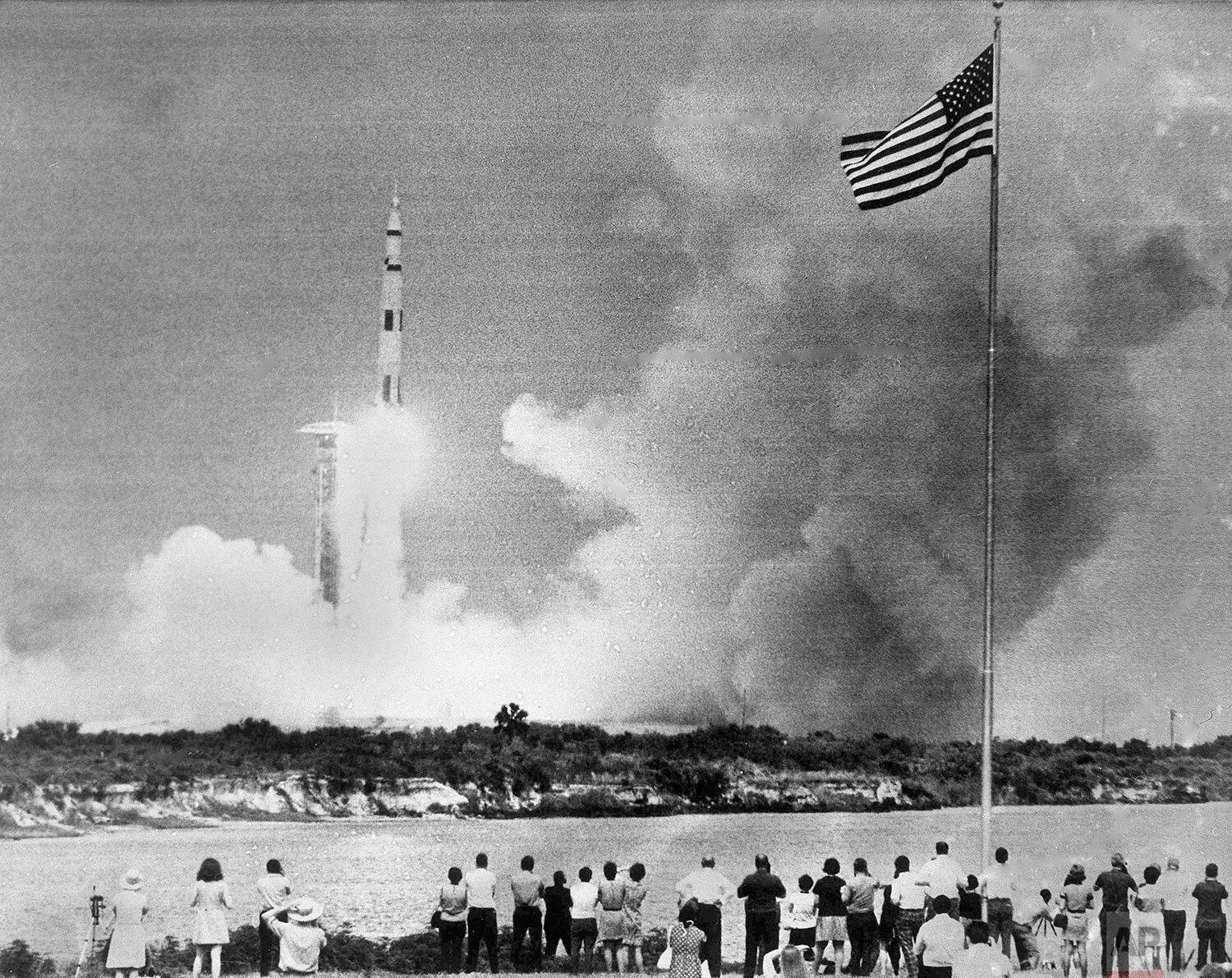 All eyes are focused on the television screen in Grand Central Station in New York City, at 1pm, April 17, 1970 watching for the safe landing of the Apollo 13 astronauts in the Pacific. (AP Photo/J. Spencer Jones)
