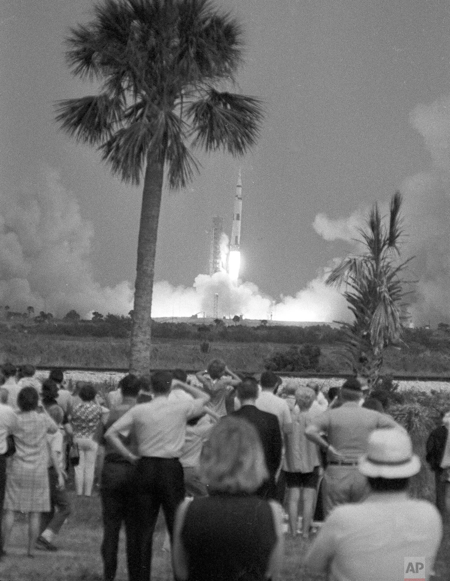 Residents of Timber Cove near the Manned Spacecraft Center greet their favorite neighbor, Apollo 13 commander James Lovell Jr., as he arrived at his home, April 19, 1970, Houston, Tex. (AP Photo)