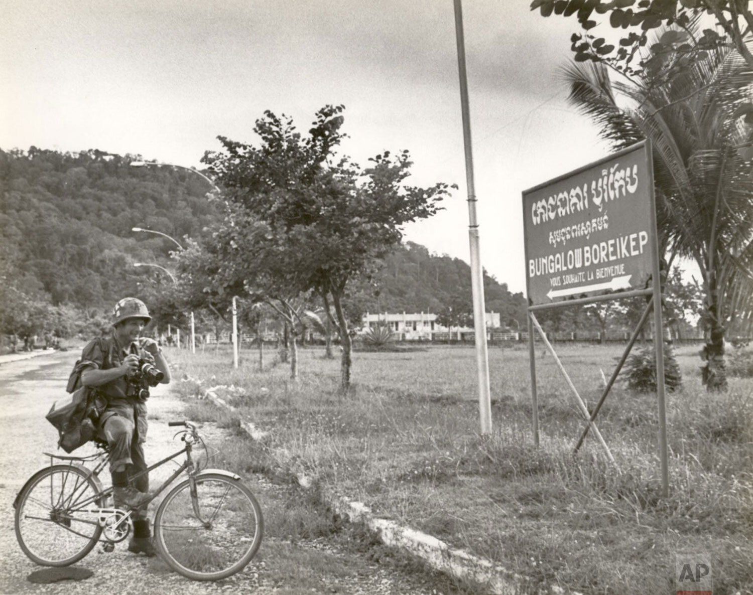 As he prepares to make a picture, Henri Huet is photographed by bureau chief, Richard Pyle near the Mekong Delta, 1970. The two met in August 1968, shortly after Pyle’s arrival in Saigon. Huet had just returned to Vietnam from New York where he had been treated for wounds to his lower right leg suffered on Sept. 22, 1967. AP Corporate Archives, Richard Pyle Photograph Collection.