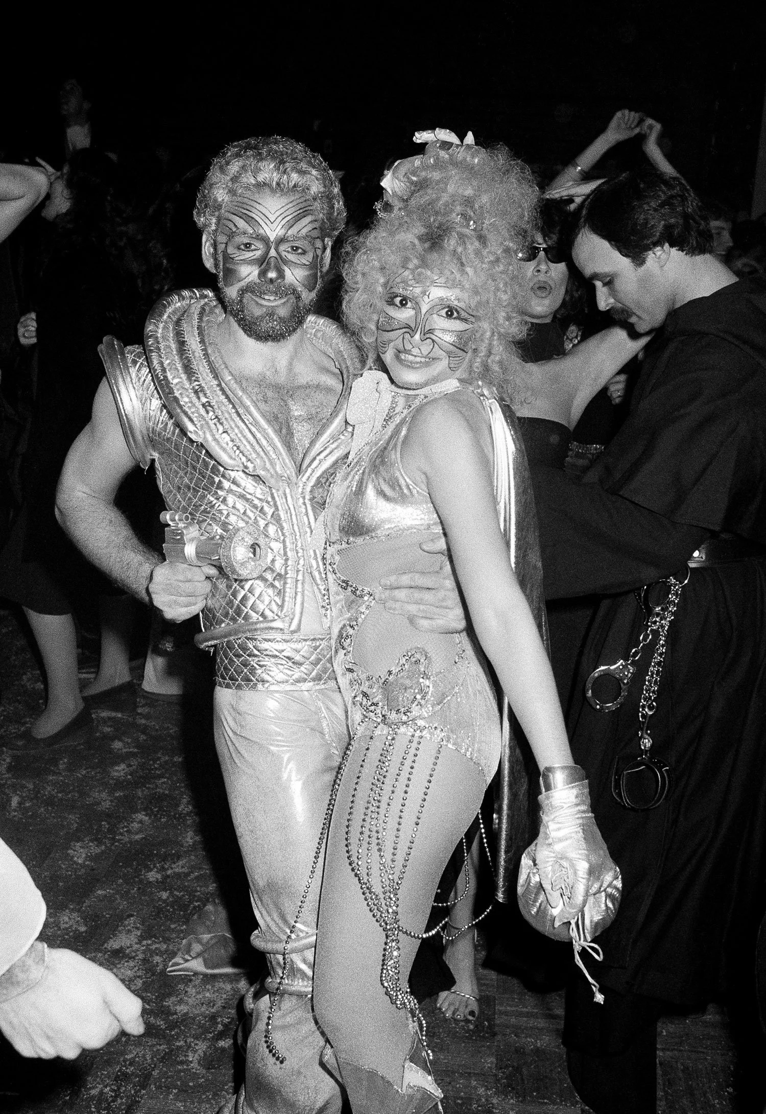 Halloween revelers at New York's Studio 54 dance the night away in costumes ranging from burlesque to stellar. The party was held at the New York Discoteque, Oct. 31, 1977. (AP Photo/Richard Drew)