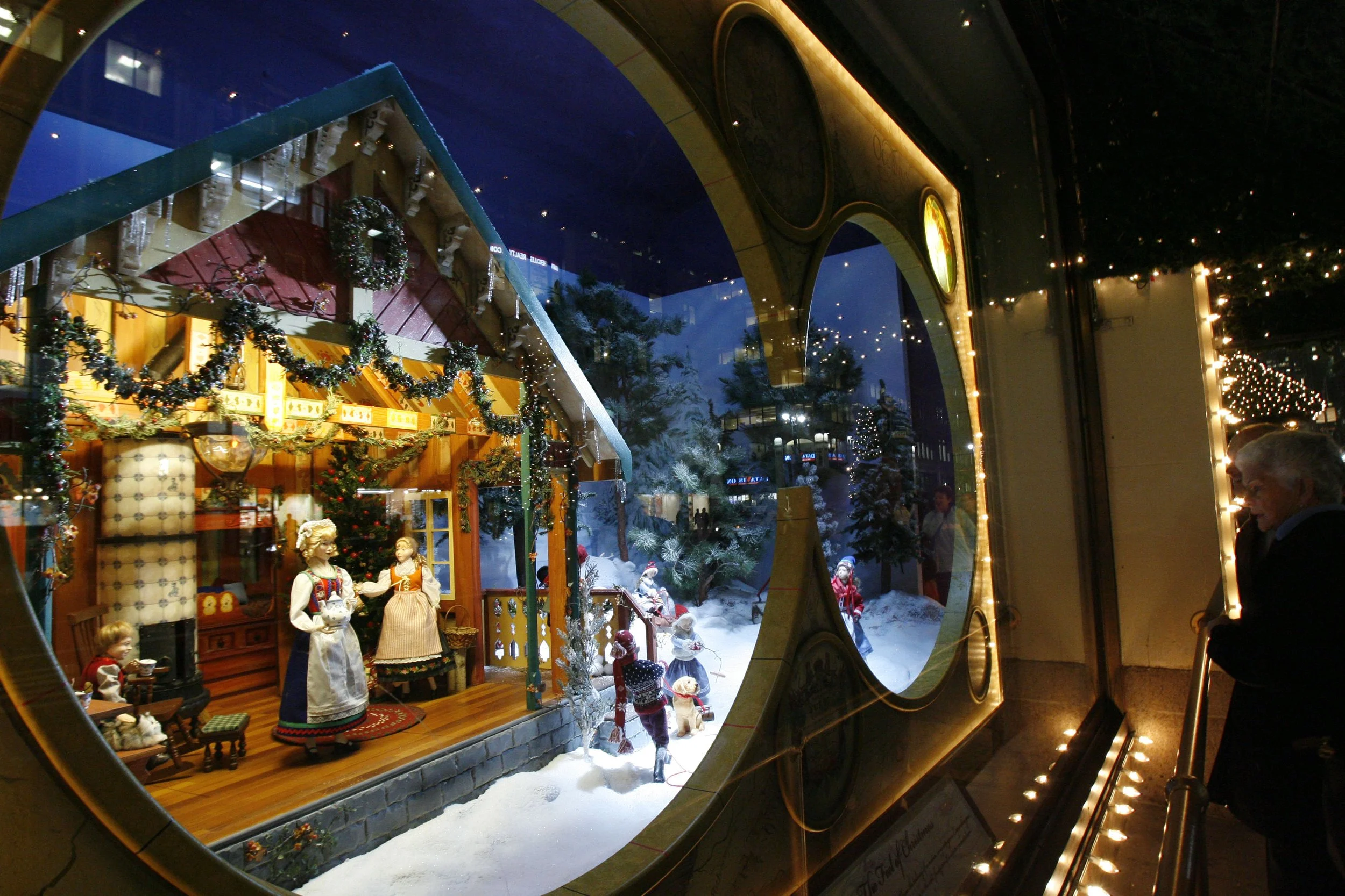 A woman pauses to view the elaborate holiday window display at Lord & Taylor's flagship store on Fifth Avenue in New York, in this Wednesday, Nov. 14, 2007 file photo. This window display features Santa Claus delivering gifts by gondola in Venice. (AP Photo/Kathy Willens)