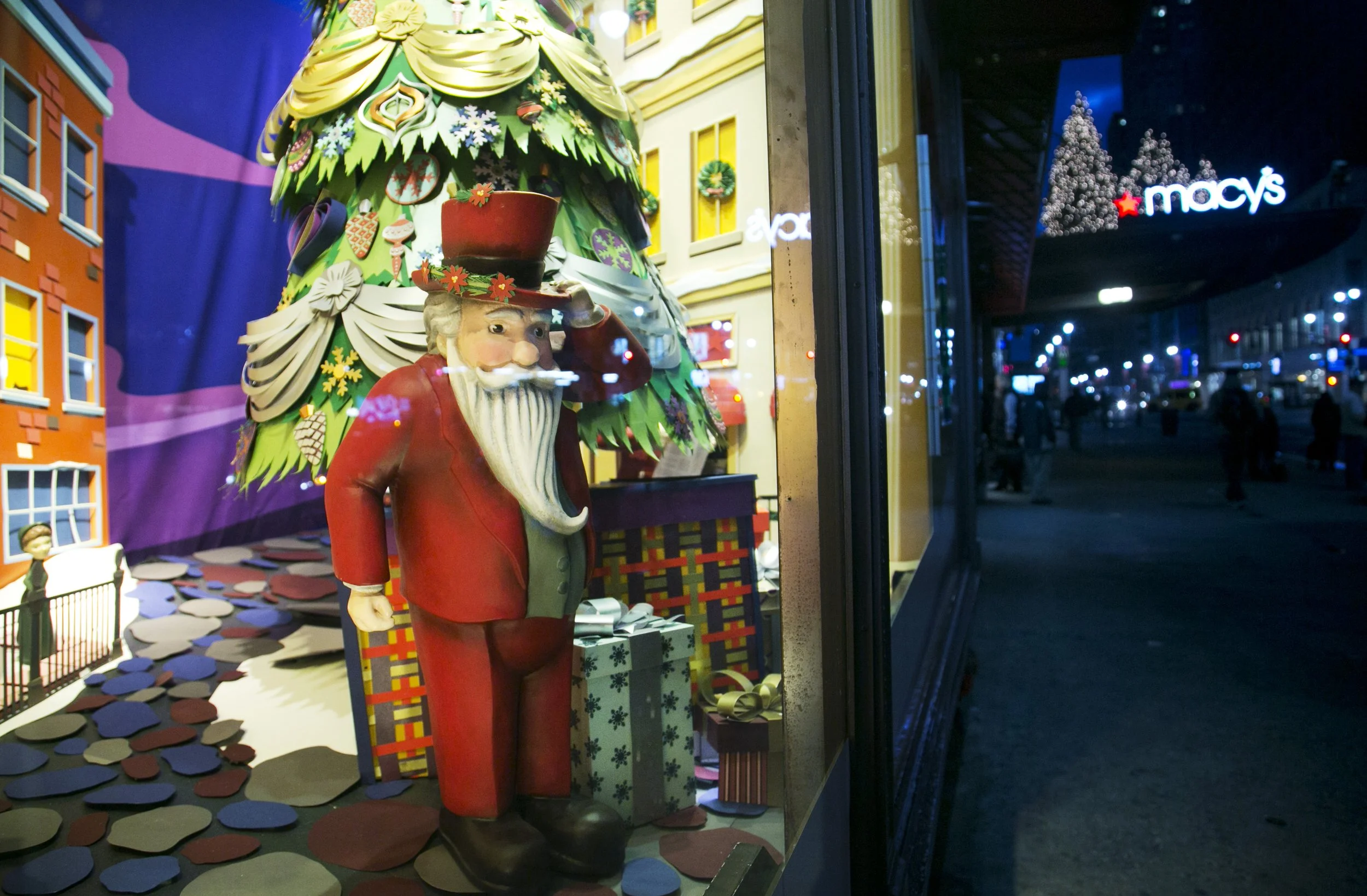 A Santa Claus figurine is part of a holiday window display at Macy's, Thursday, Nov. 21, 2013 in New York. Forget window shopping, some of Manhattan’s biggest and most storied retailers say their elaborate seasonal window displays are a gift to passers-by. Re-imagining every major holiday covered in a slick coating of ice, recreating cozy Christmas-morning scenes and paying homage to a local legend can be an annual labor of love. (AP Photo/Mark Lennihan)