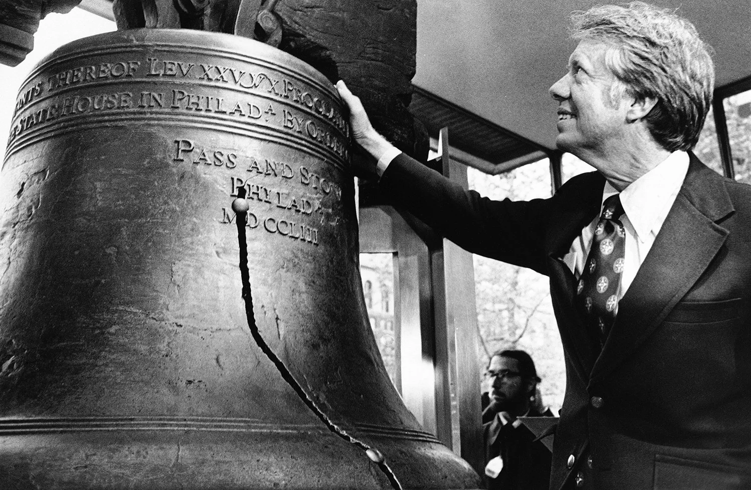 Presidential candidate Jimmy Carter visits the Liberty Bell on a campaign swing in Philadelphia, April 26, 1976. He and other candidates are in Pennsylvania for Primary elections. (AP Photo/Rusty Kennedy)