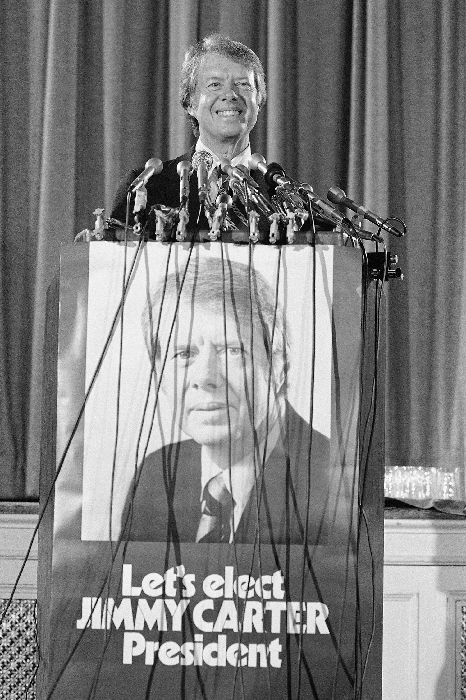 Former Gov. Jimmy Carter of Georgia announces in Washington on Aug. 14, 1975, that he qualified for federal matching funds to help finance his campaign for the 1976 Democratic presidential nomination. (AP Photo)