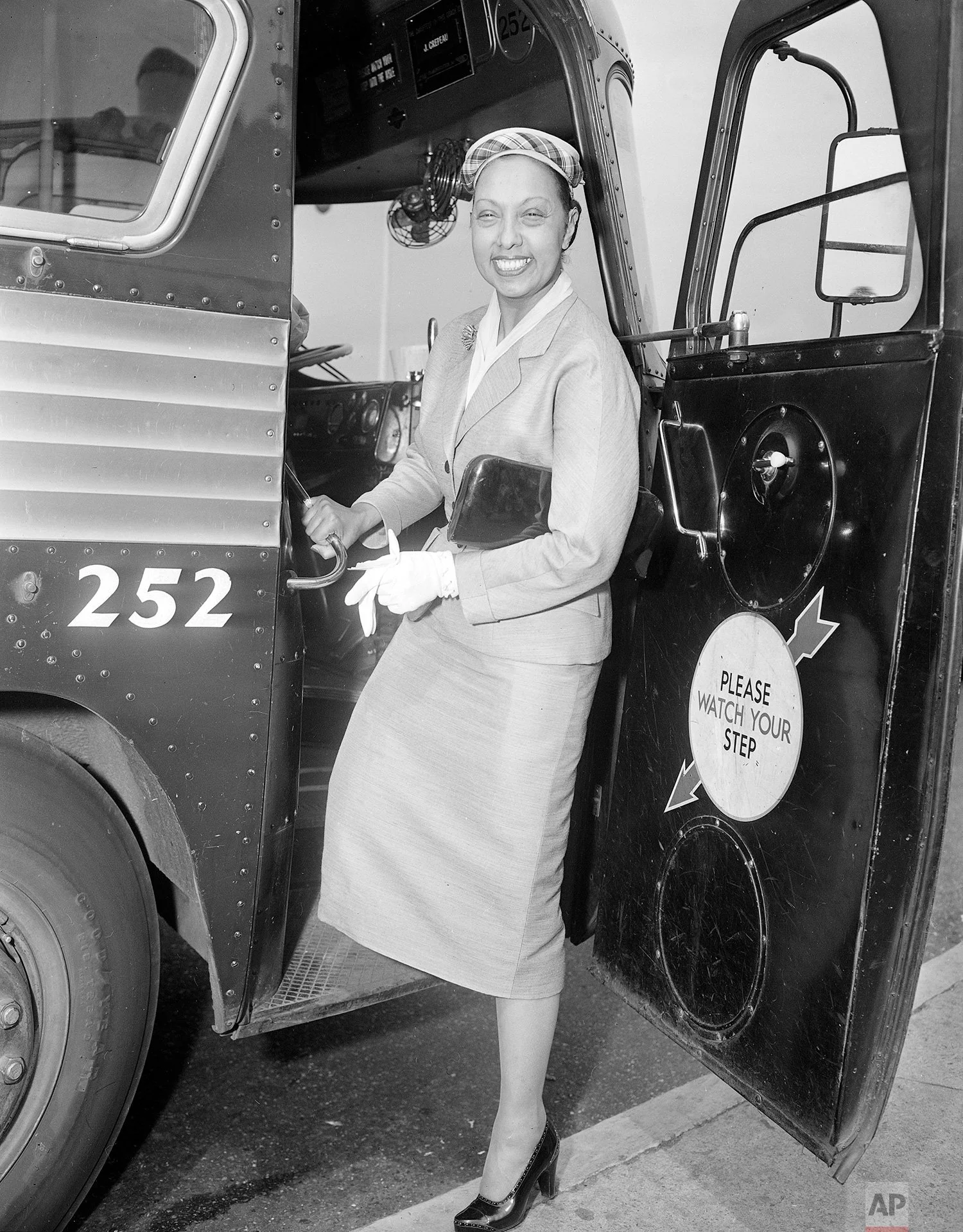 Entertainer and American ex-patriate Josephine Baker boards a bus at New York's Idlewild Airport after being detained by immigration authorities on her arrival from Paris, June 5, 1954, and then permitted to stay until July 1. Ms. Baker, an outspoken champion of civil rights, left the U.S. in 1951 charging that she had been discriminated against in a New York nightclub. (AP Photo)