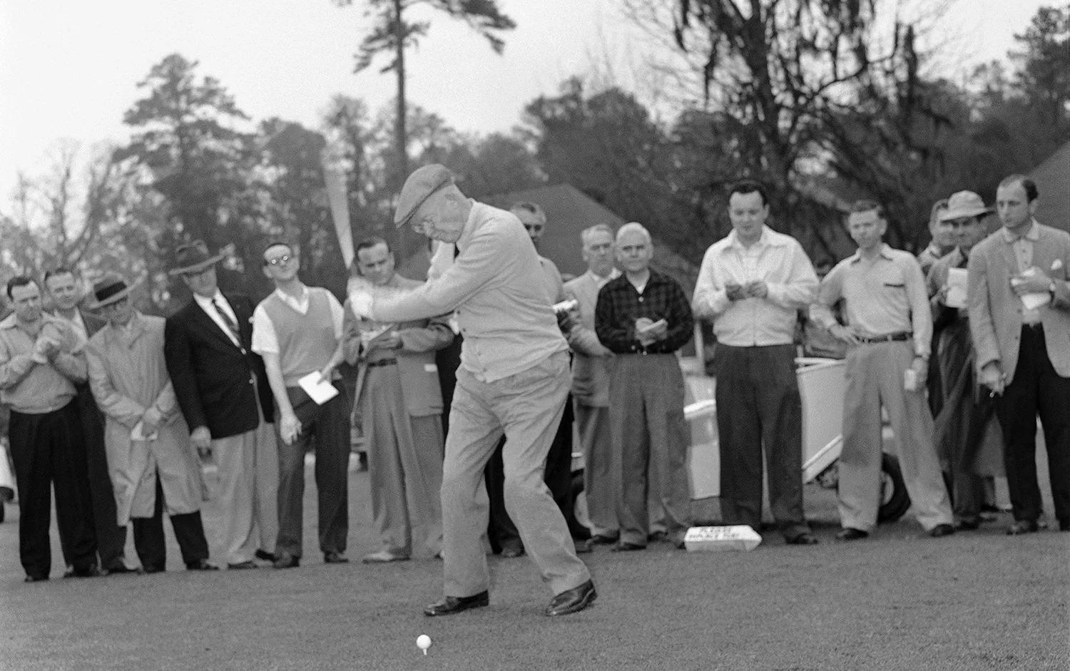 President Dwight Eisenhower takes a hearty swing at the ball in Thomasville, on Feb. 17, 1956. (AP Photo/Bob Schutz)
