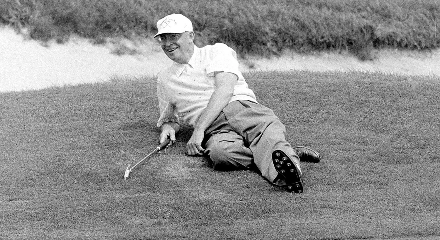 President Dwight Eisenhower relaxes at the 18th hole during a golf game in Newport, R.I, Sept. 10, 1957. (AP Photo/Henry Burroughs)