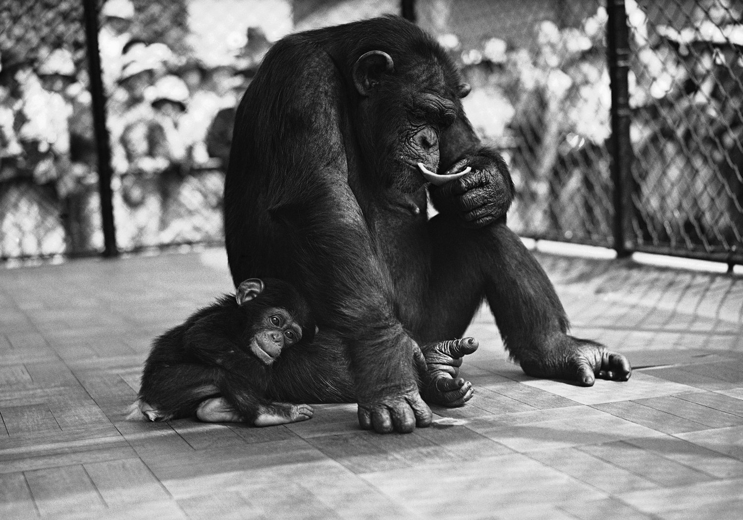 Boo Boo, the chimpanzee, and her baby daughter, Jubilee, were the center of attraction for a delighted crowd of holiday makers at London Zoo on Aug. 7, 1935. (AP Photo/Len Puttnam)