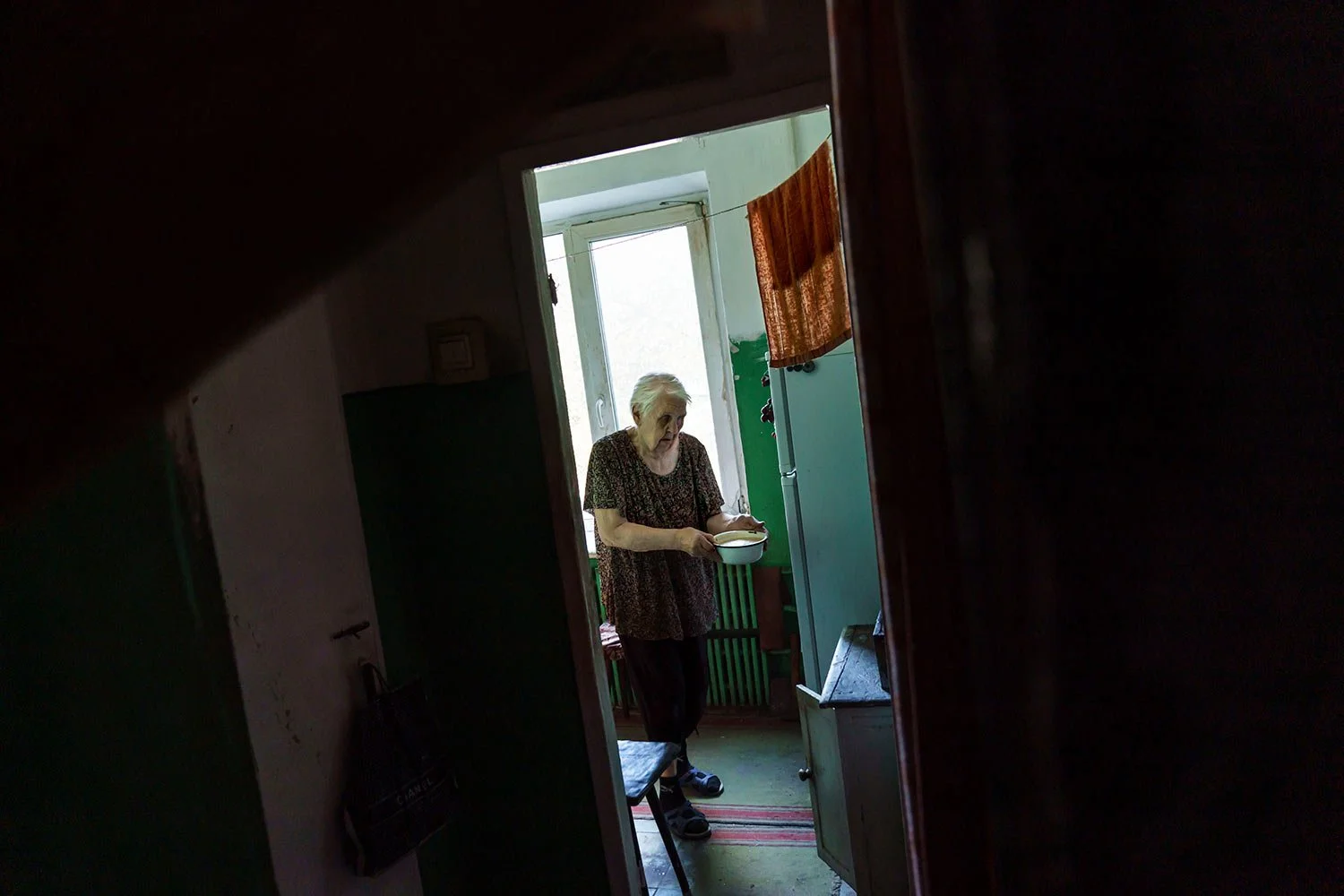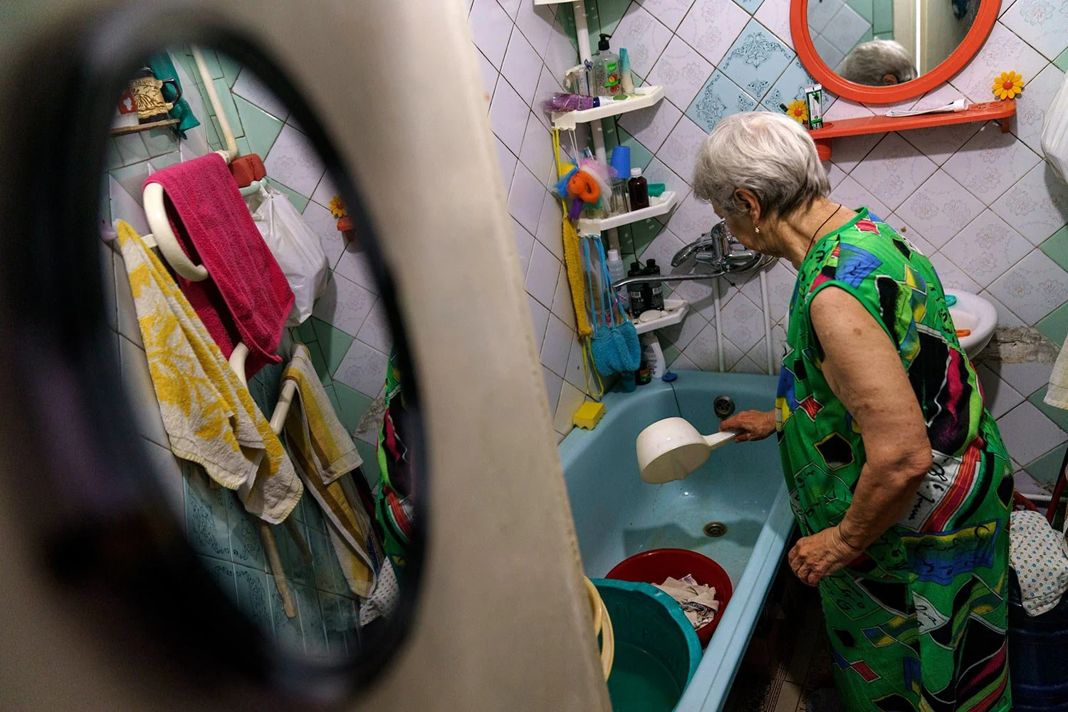 Another Sloviansk resident, Ninel Kyslovska, 75, gathered water from a tank at a park on Sunday for marinating cucumbers in the sun that afternoon. She said the scarcity had upended all aspects of her life.